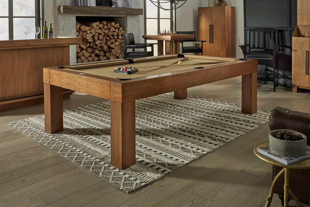 The Alta pool table brings functional luxury living into your home. Ultra clean lines combine with a timeless, minimalist aesthetic for a contemporary design. Pair this billiard table with a dining conversion top (sold separately) for ultimate entertaining. This pool table features black matte diamond rail sights, chic construction, and internal drop pockets.