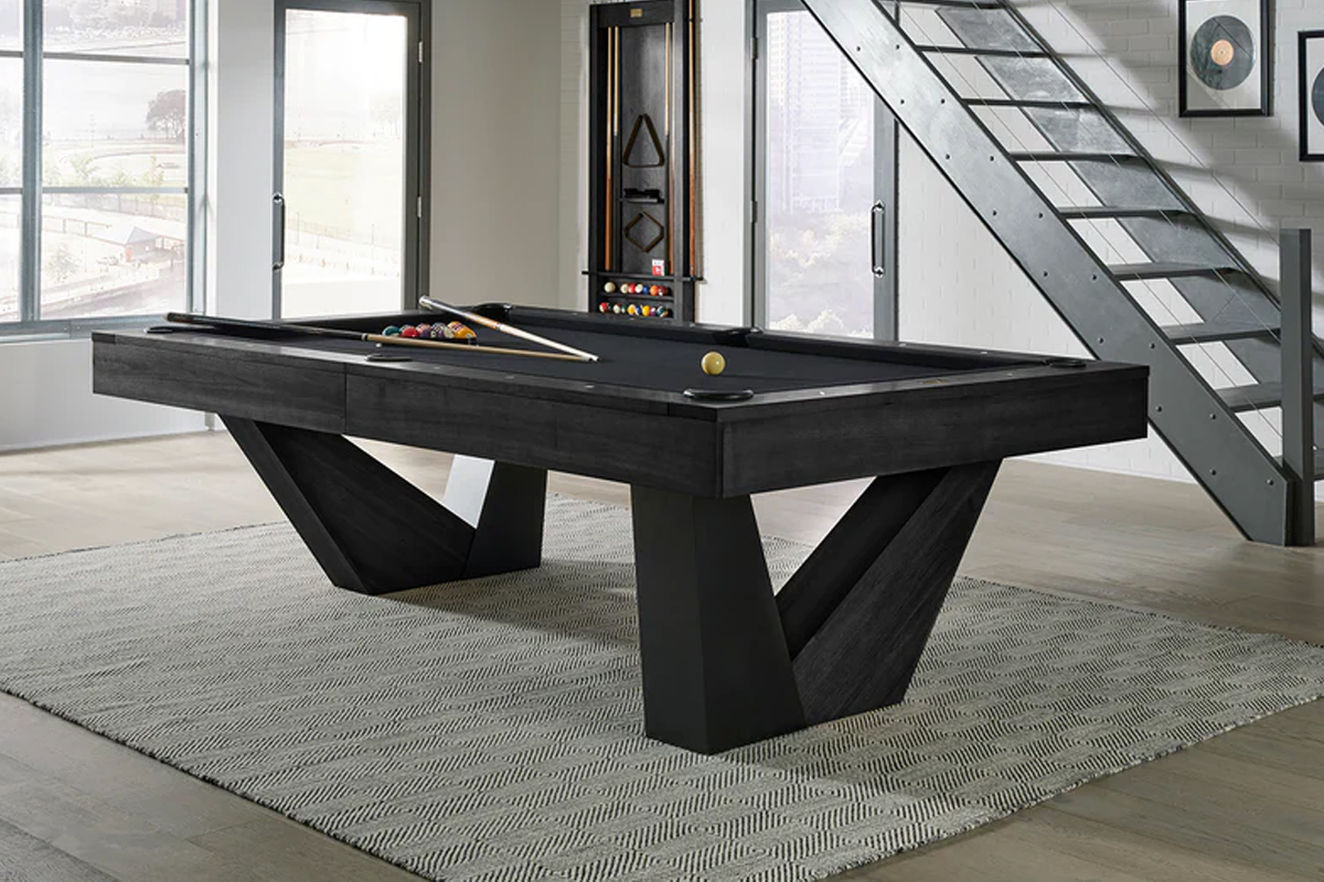 The Annex billiard table is an edgy, stylish focal point in any game room. With ultra-modern aesthetics and functional simplicity your friends and family will enjoy this billiard table for years to come. This pool table features black matte diamond rail sights, robust construction, and internal drop pockets. Pair this billiard table with a dining conversion top for ultimate entertaining.