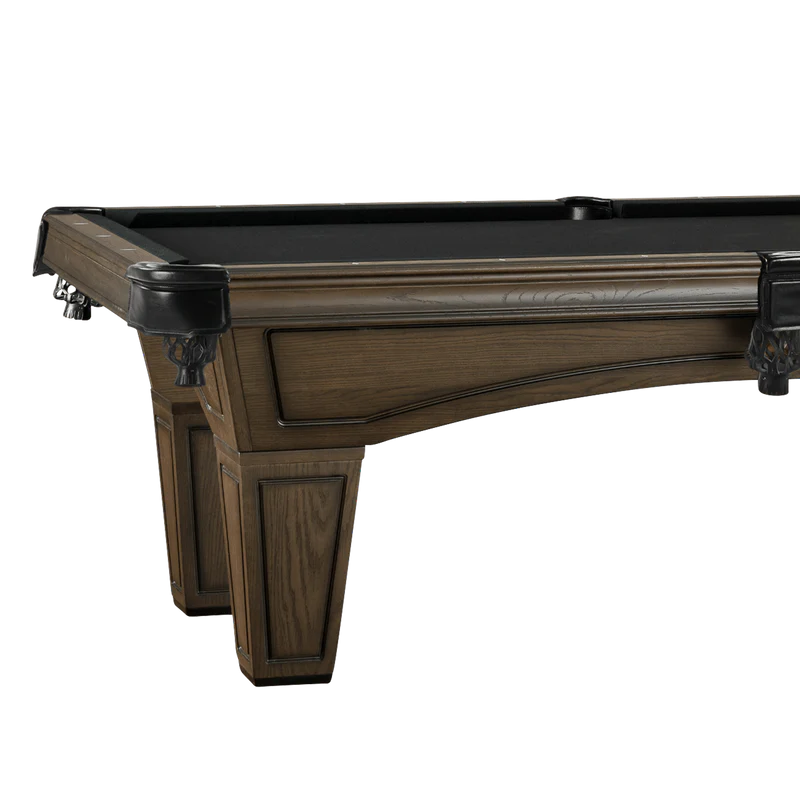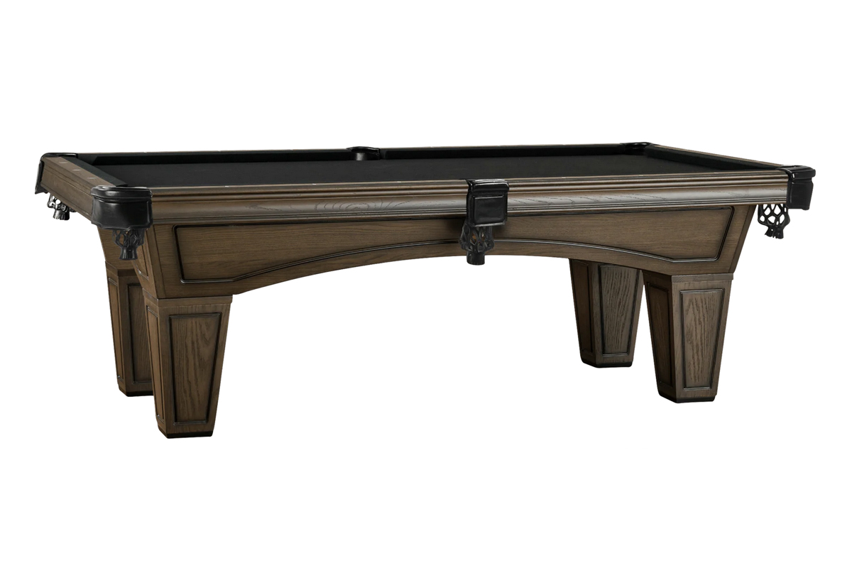 The Austin features intricately tapered legs that lead up to the solid wood corners and routed arched cabinet of this soon-to-be family heirloom. This table offers excellent playability while its’ astonishing design, exceptional tailoring, and finish projects panache and sophistication. The Austin includes a 1″ certified slate for tournament-quality pool table play.