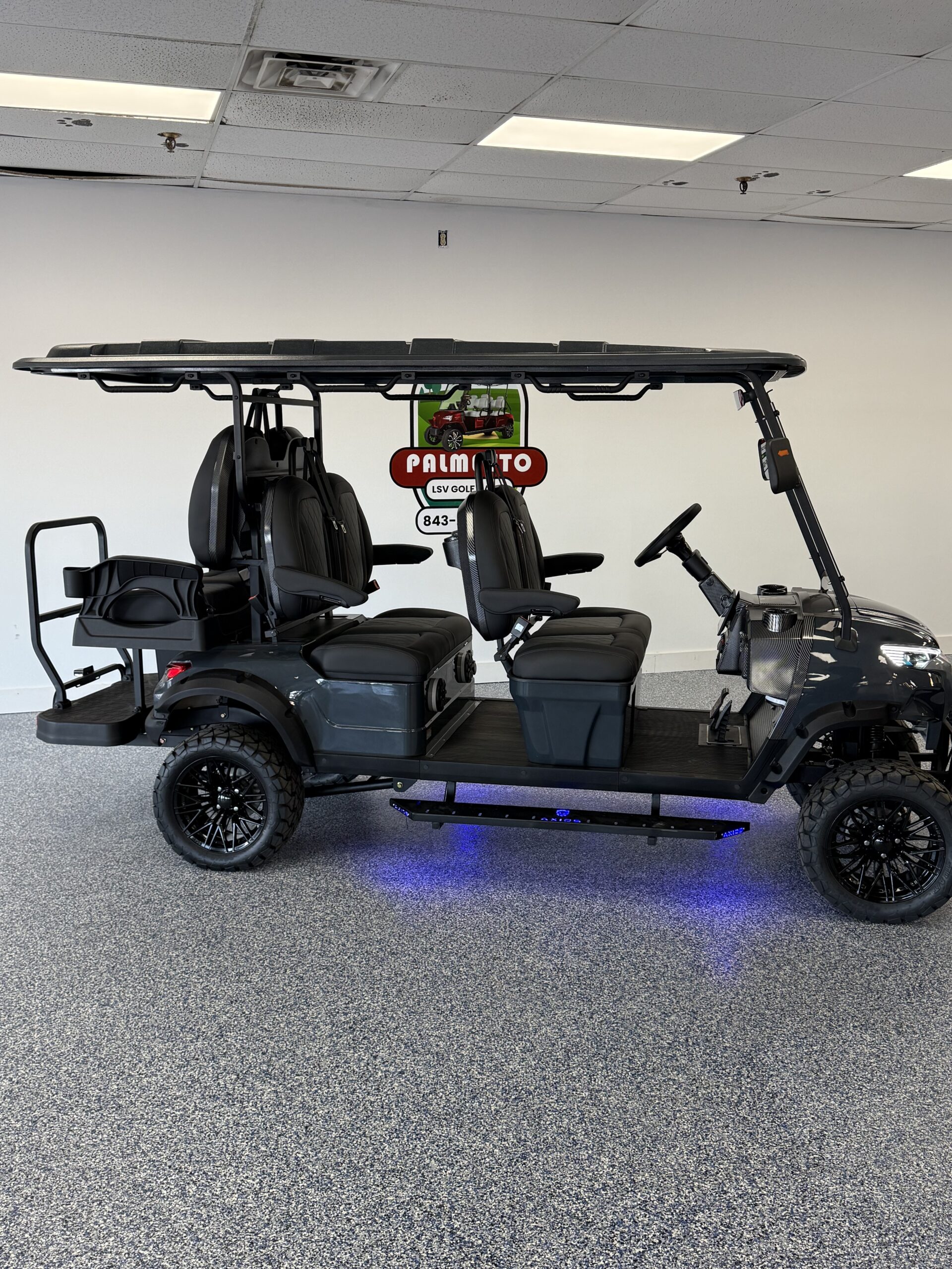 The Axios Arion is a tech-forward electric cart built for performance and style. Powered by a 48/72V lithium-ion system and high-efficiency AC motor, it delivers smooth, quiet rides on any terrain. Features like LED lighting, hydraulic disc brakes, DOT-rated tires, and an LCD screen infotainment system supporting Apple CarPlay and Android Auto make it as smart as it is capable — combining modern design with everyday functionality.