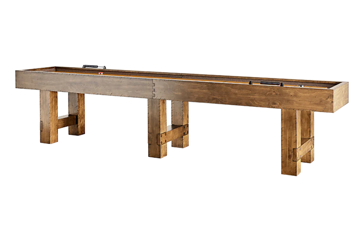 The Bristol shuffleboard is a refined rustic design that naturally compliments home décor with its unique charm. This shuffleboard features a popular playfield with climatic adjusters, solid style with rich Charcoal finish, and an abacus scoring system. Available in Charcoal and Harvest finish options.