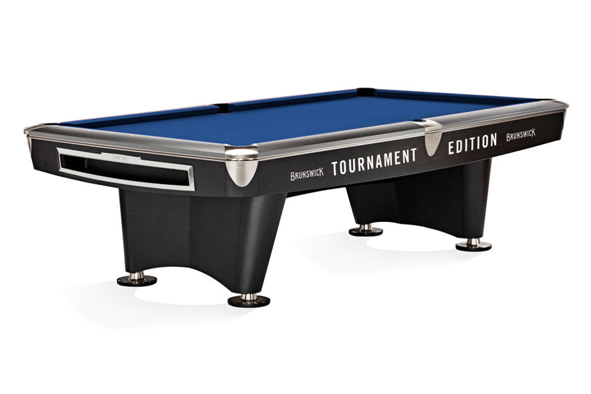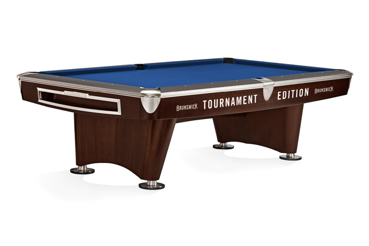 The Gold Crown VI continues Brunswick’s tradition of excellence as the newest edition of the legendary table series. The Gold Crown VI features a familiar design with modern styling. The new low-profile leg base and hidden stretcher provide a streamlined appearance while the angular canted leg emphasizes the clean lines. The table also features new corner and rail castings in a brushed nickel finish for a sleek high-end aesthetic. Available in 9′. The Gold Crown VI Tournament Edition table features longer rails and tighter pockets engineered to strict World Pool-Billiard Association specifications. Table decals included.
