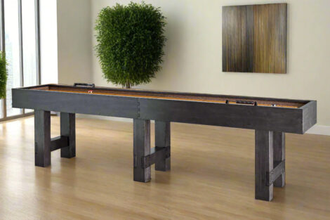The Sanibel shuffleboard table features a modern design with ultra clean lines and minimalist aesthetic- a perfect match to the best-selling Sanibel Billiards Table. The Sanibel is available in Rustic Grey or Rustic Dark Brown finishes and offers a 12′ or 14′ play surface that promises to deliver quality and playability.