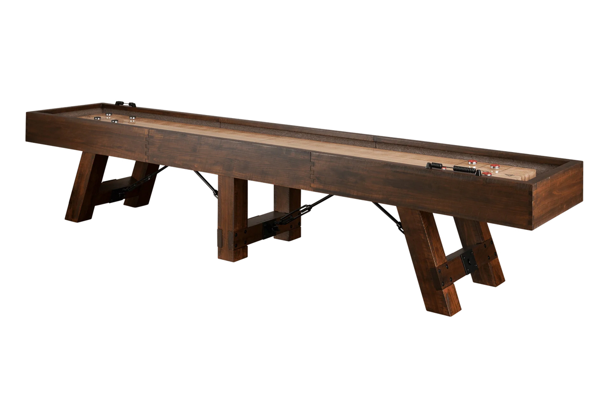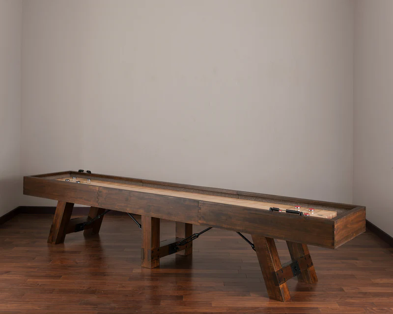 This shuffleboard table requires professional installation. Please reach out to an American Heritage Billiards customer service expert to locate a dealer near you who will coordinate the delivery and professional installation of your new shuffleboard table.